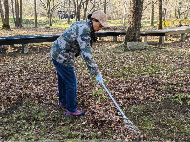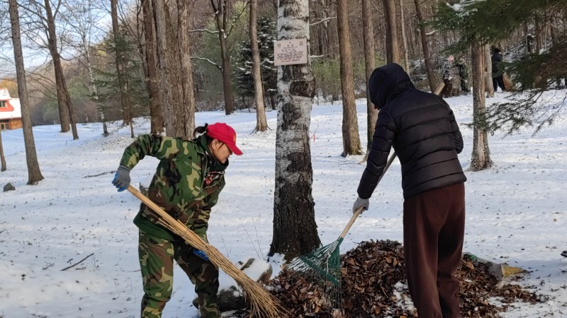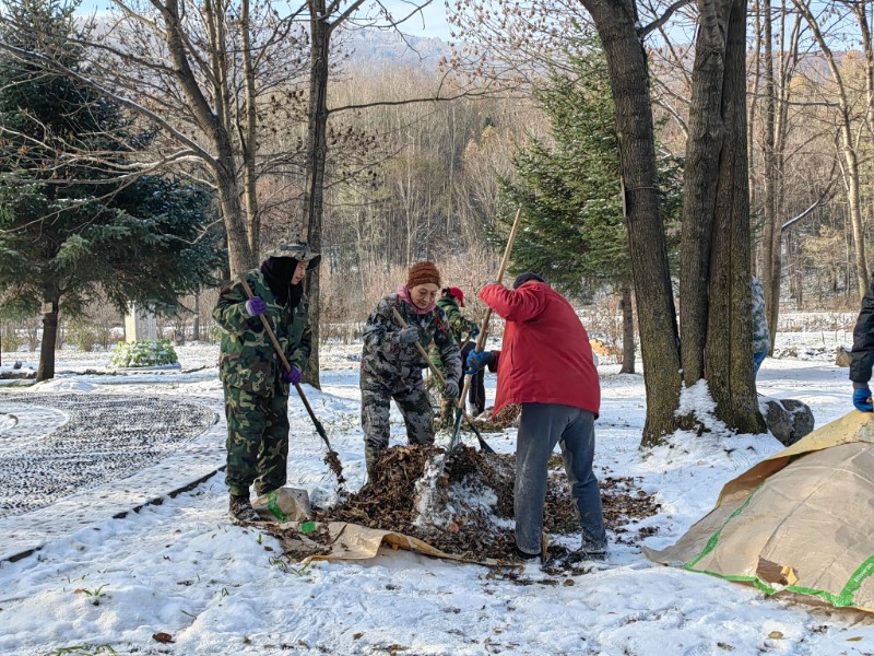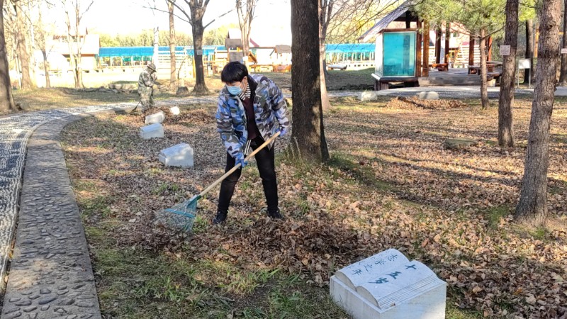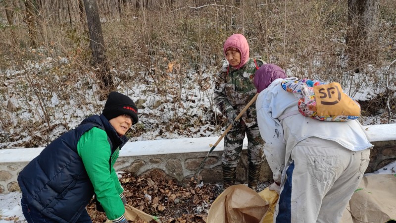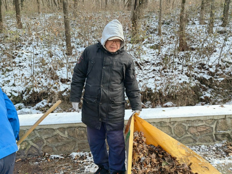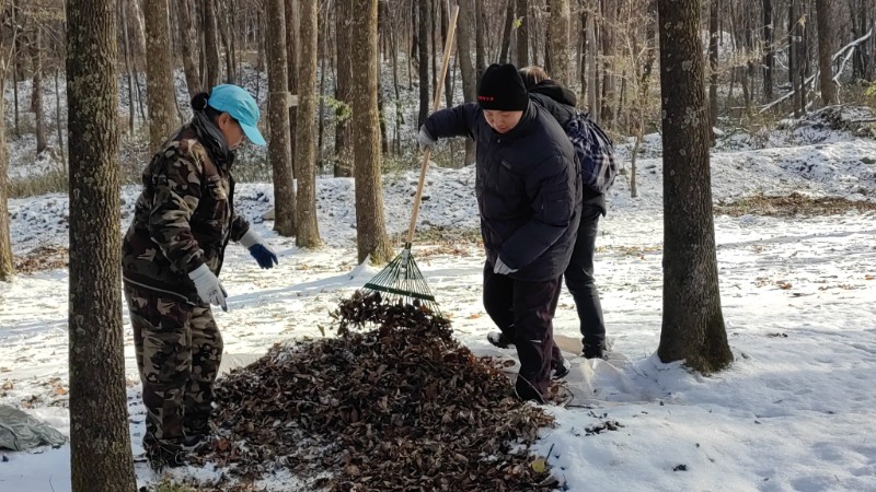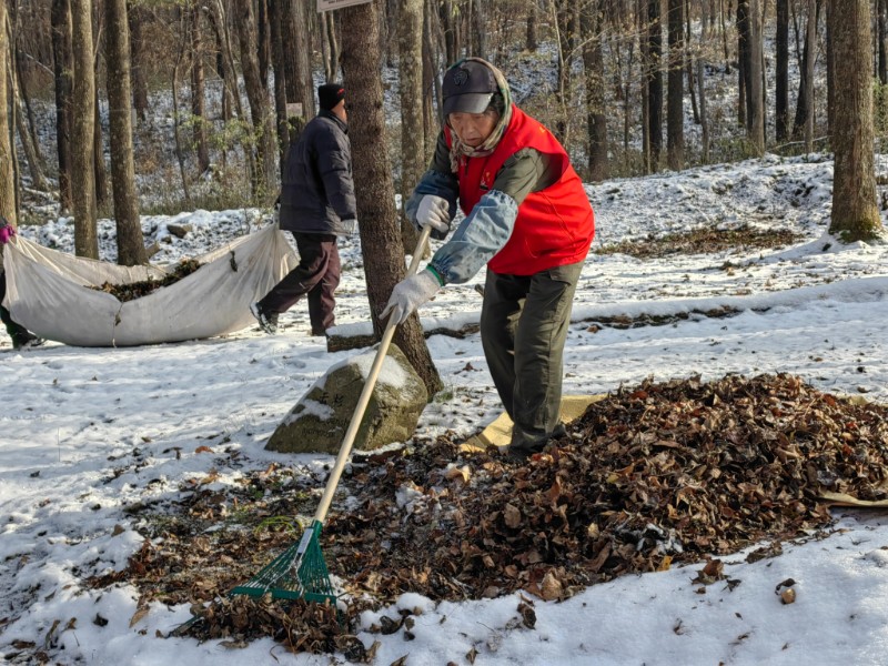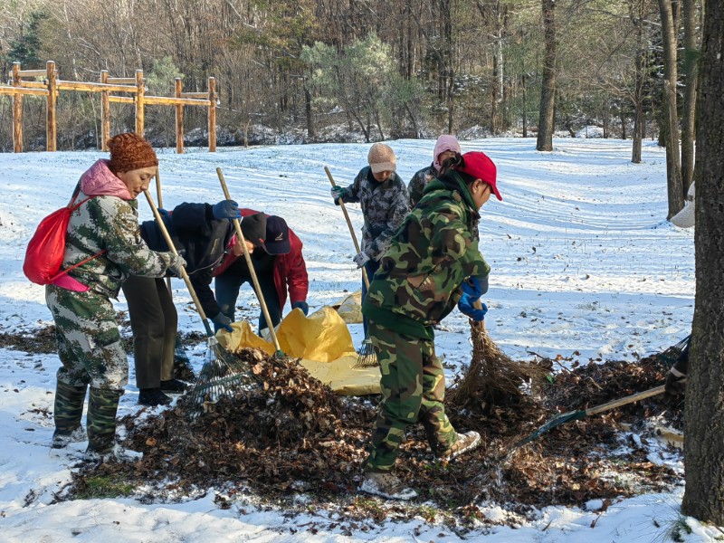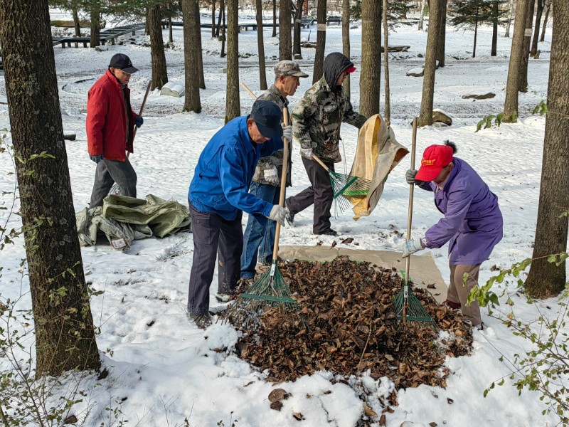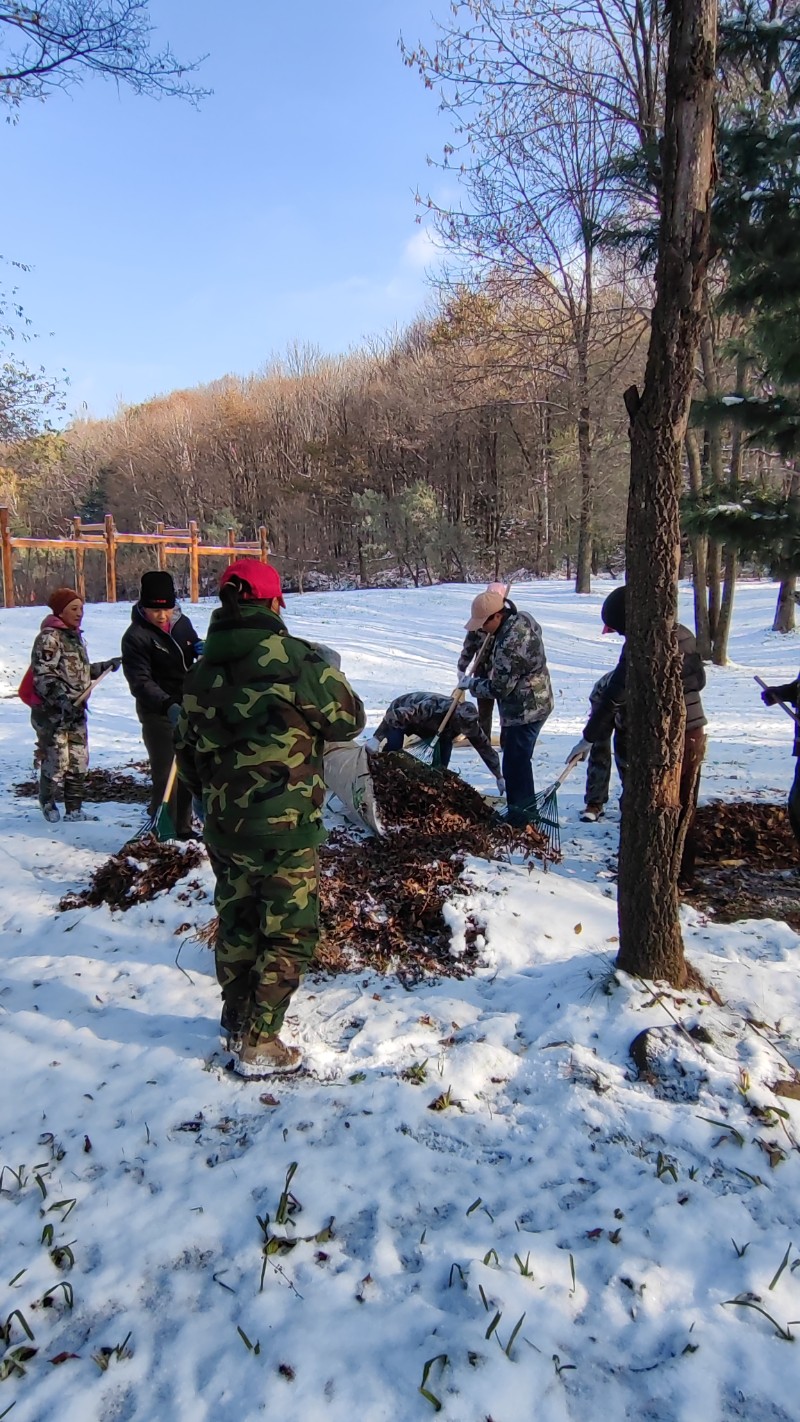 日月峡一年的户外劳动尾声,今年冬雪来的较迟,叶落归根自然也晚,因此梳理百寿路两侧与公园里路两旁落叶的时间随着延迟。但是志愿者们坚守岗位直到10月20号将落叶搂完为2025年度圆满画上了一个句号。