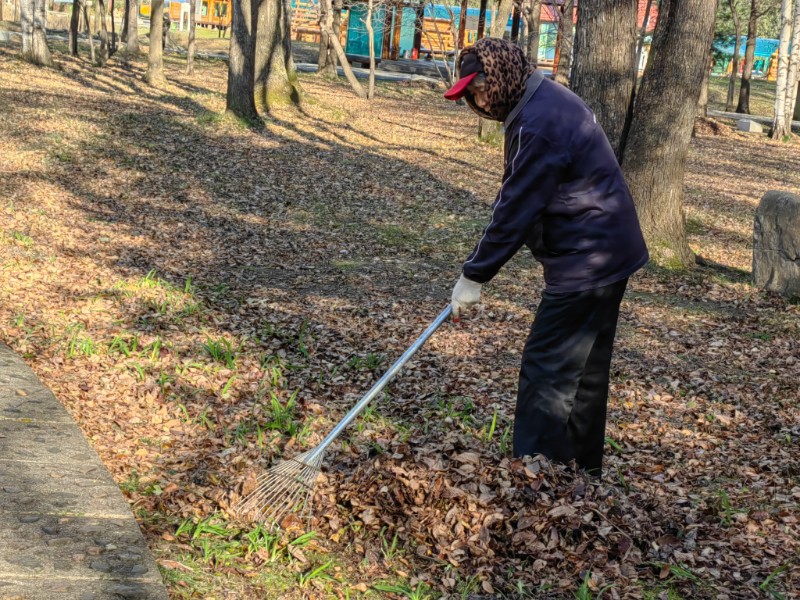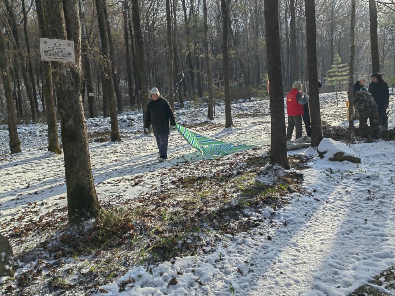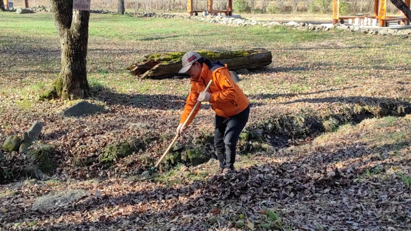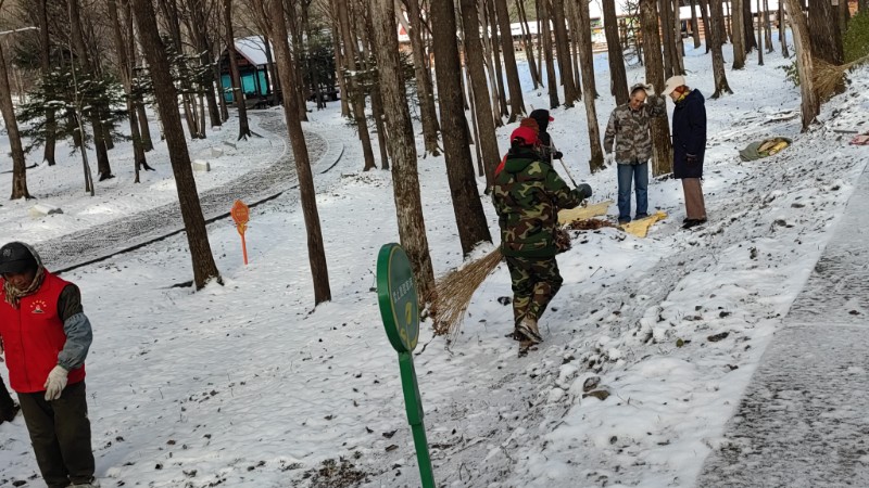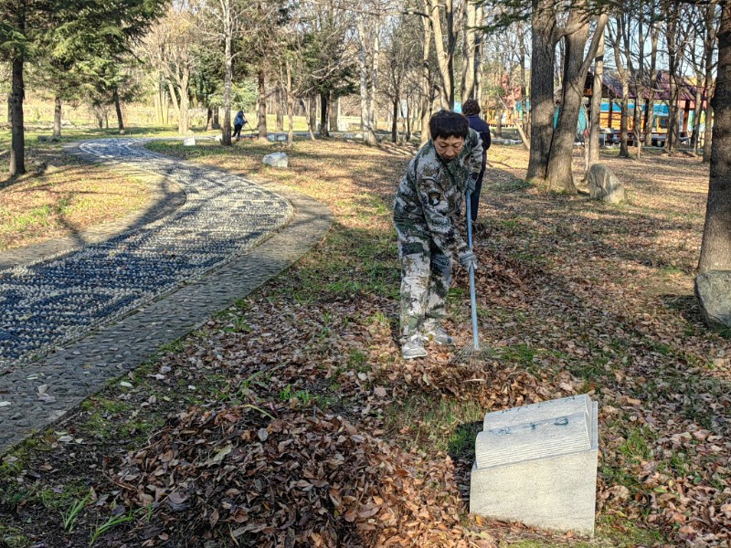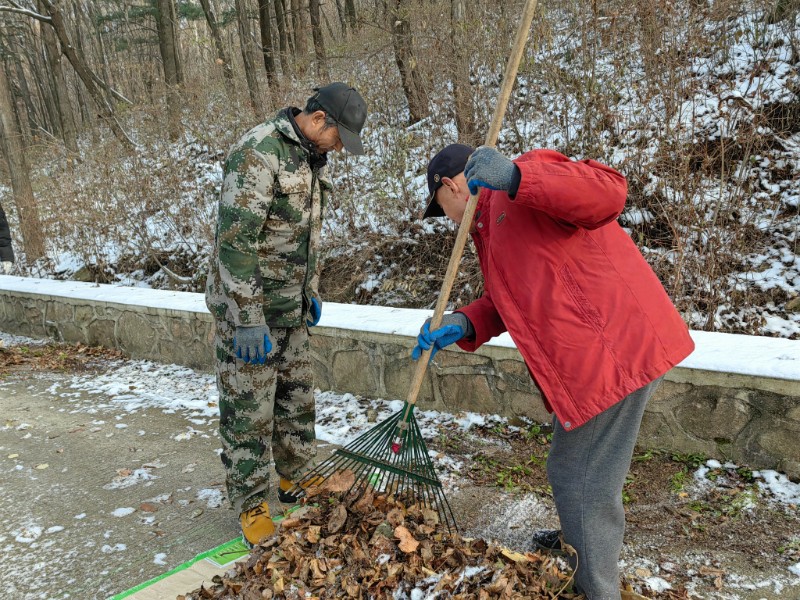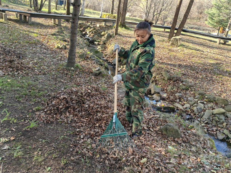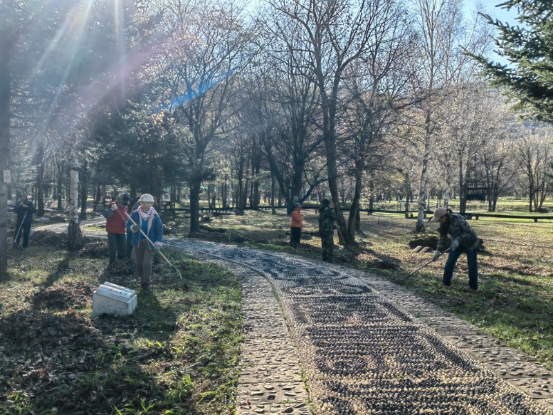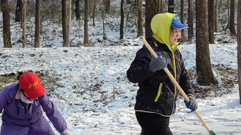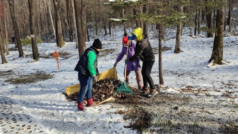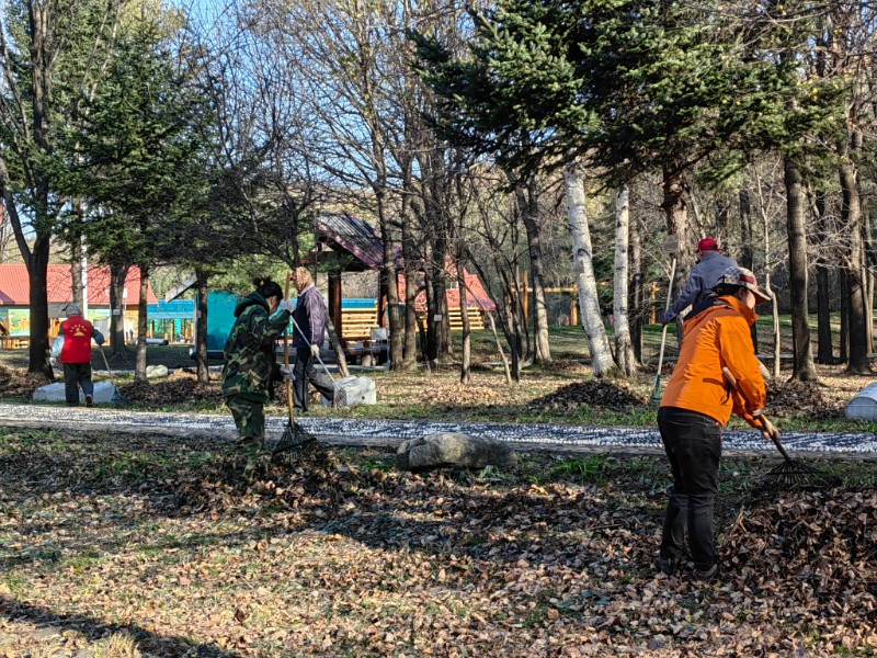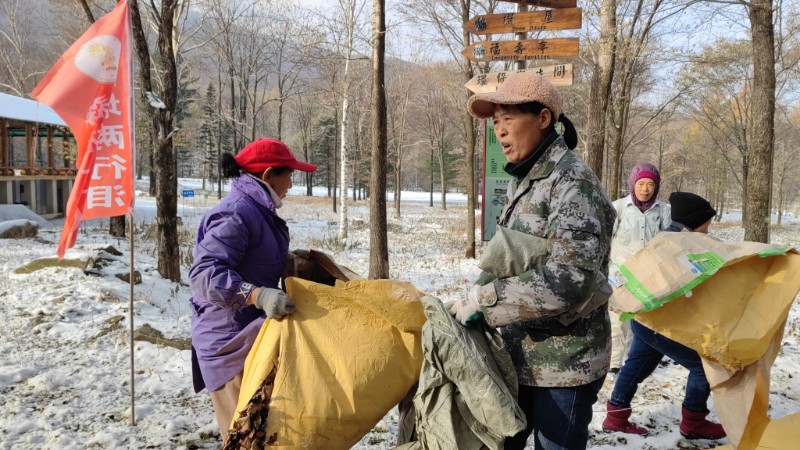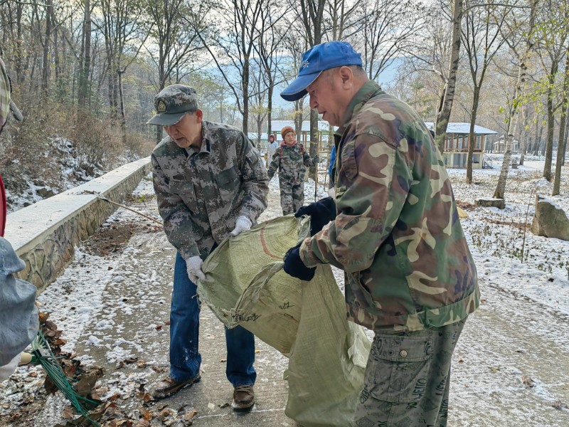 日月峡一年的户外劳动尾声,今年冬雪来的较迟,叶落归根自然也晚,因此梳理百寿路两侧与公园里路两旁落叶的时间随着延迟。但是志愿者们坚守岗位直到10月20号将落叶搂完为2025年度圆满画上了一个句号。